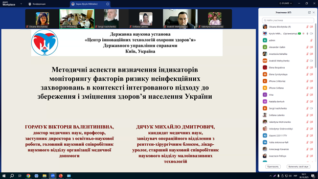 30 жовтня 2025 року в рамках проведення науково-практичної конференції з міжнародною участю «Медицина в умовах воєнного часу: інноваційний пошук, доказова практика та мультидисциплінарні рішення» відбулося пленарне засідання «Методологічні аспекти системи моніторингу здоров’я населення і факторів ризику в Україні».