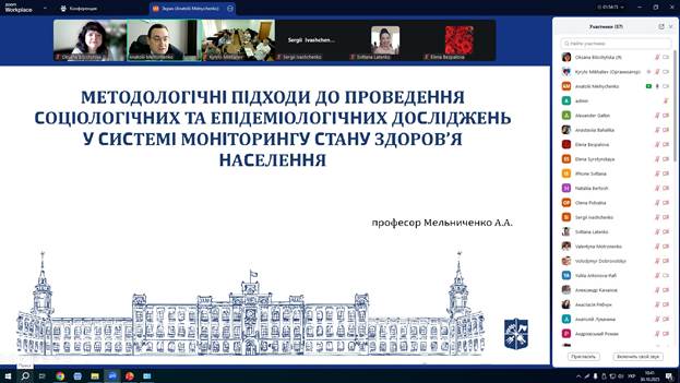 - Методологічні підходи до проведення соціологічних та епідеміологічних досліджень у системі моніторингу стану здоров’я населення (к.ф.н., проф. Мельниченко А.А., Національний технічний університет України «Київський політехнічний інститут імені Ігоря Сікорського»);